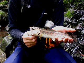 "山女は危うくホールドにしそうになった安谷川の大将。 意外にも良型サイズの山女魚が・・"