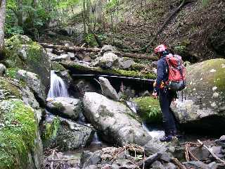 林道はこれで良いかと尋ねたが、フィッシャーマンは知らないと言う。さようならを言い、そのまま進むが選択は正しかったようだ。右岸に渡り、さらに左岸に渡った先で道幅は広くなるところで、前方左手に大きな支沢が入り込んでいる。水量も十分で、当然林道から離れるわけだから少しは渓の状態もいいだろうと、これを遡行することにする。