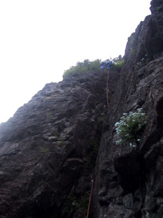 5.8とグレーディングされているピッチは短いながらもそこそこフリークライミングを楽しめるもの。既成ルートのビレーポイントでピッチを切る。