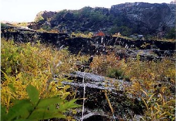 トポでは三角岩の真ん中の垂壁を直上するかたちで線が引かれているが、この易しい三角岩が終わる辺り(ビレーポイントから10m強くらい)で被った壁となり、目を凝らしてもその壁にはピンは見当たらない。だからそれを左からか右からかわしていくことになりそうだし、一旦下降し、あらためてビレーポイント左の傾斜のゆるい辺りを探る。しかし、こちらにもピンは見当たらず、再度三角岩を登り、意を決して三角岩のテッペンあたりから左上していくと枯れ草の下にハーケンが見つかりほっと人心地つく。その後もランナウトながらも時々ボルト、ハーケンが現れ、左上を続けていく。ゆうに40m延ばしただろうけれどもビレーポイントは現れず、碓井さんからも登り過ぎのコールが掛かる。一旦クライムダウンし右方向を探すとあった。単純な見落としミスだった。