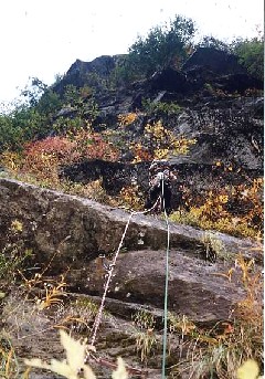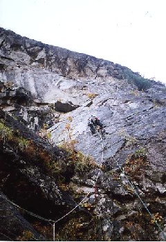 フリーとなっているが結構悪い。ブッシュの間に開けた登路を直上して行く感じ。支点も少なく、また、ブッシュも多くうるさい。
