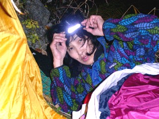 食事が済むとする事もなくシュラフに入り込み、しばし星の鑑賞会。あったかい夜に助けられ快適な眠りにつく・・というのは嘘。バンドから投げ出した足が窮屈で、何度も寝返りを打ちながら体勢を変え、短いインターバルで浅い眠りを繰り返す。