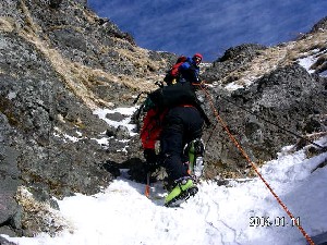 P3の核心部のルンゼ入り口には4人の外人さんがいたけれど、先行させて頂き山頂へ向かう。