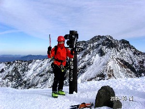 "ようやく阿弥陀山頂、ヤッター!きちんと登頂したこと、そして、これで登高が終わったことの両方が嬉しい!!"