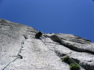 ・ビレーポイントについてはいずれも良好。 ・水は12リットル持ち上げたが、取り付き点に降り立ち、下山に移る前、喉を潤し2リットル廃棄した。 2日間とも暑い日だった。 ・トポに記載されている各ピッチ長より実際のほうが長かった。4ピッチ目、6ピッチ目は各々150feet(45m)となっているが、 実際は50m以上は確実にある。50mロープでは無理だと思う。 ・エルキャプからハーフドームに向かって吹く風は強く、正午前から夕方5時前まで止むことはない。ロープのスタックには、 十分注意が必要と感じた。 ・岩を落とすと、必ずディナーレッジに落ちる位置関係にある。8ピッチ目は十分に注意が必要と感じた。