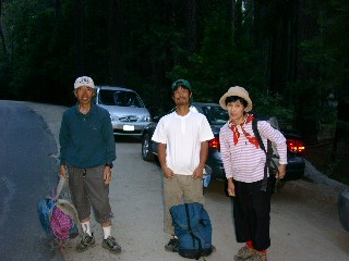 今回のメンバーは凄い。写真左のお二人は北海道からこられた橋村さんと塩田さん。数日前にサラテを成功させた方々で、橋村さんは還暦を過ぎてサーティーンを攀られ、塩田さんもクラックをこよなく愛す12クライマー。我々はすこしビビリながらのランデブーとなった。昨日、グレーシャーポイントから全貌を眺め、さらにマウンテンショップでアプローチを確認しています。情報はバッチリです。さあ、出発しましょう。