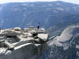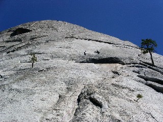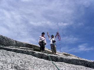 "ロープを解いてからも緩傾斜のスラブが延々と続く。結構堪える。 ハーフドームの天辺は思ったより広大だ!"