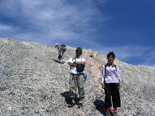 ロープを解いてからも傾斜の緩いスラブが延々と続く。これまでほとんど休みなく登ってきているから、この最後の登りが結構堪える。我慢我慢で一歩ずつ足を運ぶとようやくハーフドーム山頂大地に出た。思ったより広い。驚きだ。