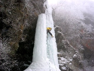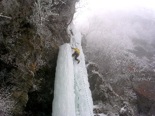 もう一本、きっちりスクリューをセットし、もう、大安心。直ぐに傾斜も落ち、心配した落ち口の結氷の悪さもなくF1を足元にすることができた。左の立ち木でオフビレー。緊張したクライミングの後に必ずついて回る血液の逆流による指先の痛みは、今日は甚だしく、絶叫したくなるほどだった。