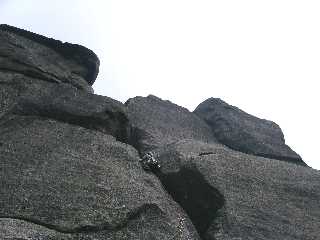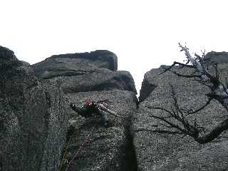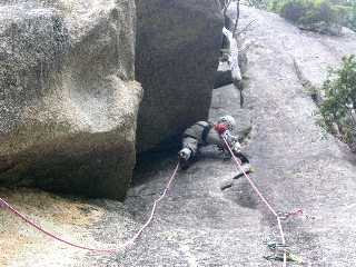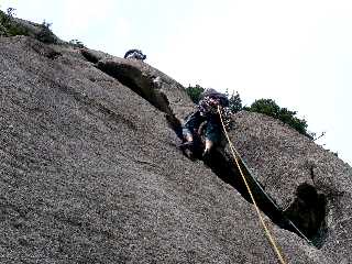 さて、ハイピークルート。やる気満万の北林さんスタート。クラックルートは初めてと言いながら快調に攀られ、続く2ピッチ目もあっさりとリード。