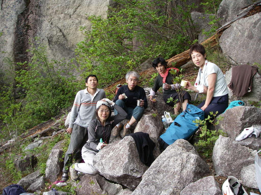 "クライミングをエンジョイした後は、皆でお茶とおやつ。至福の喜び(菅さん、カメラマン)"