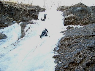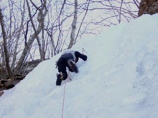 この御場山西ルンゼは、YCCの神谷君のHP上で紹介されたときから、登りに行きたいと思っていた1本だ。山登魂の高田さんから、先週、しっかり凍っているという情報を頂いたことで、早速出掛けていった。