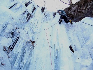 F2は氷柱っぽい感じで、僕がリードさせてもらう。取りついてみると、下で見た目より難しく感じられ、かなりマジモードで抜ける。