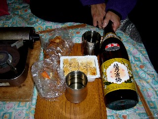 前夜、いつもの場所で入山祝い。昨年に引き続き、碓井さんの京都のお友達の佐藤さんが送って下さった越乃寒梅で乾杯!素敵な友達を持っているパートナーを持っている、僕は幸せ・・。