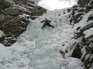 さて、大滝。碓井さんは見るなり、「攀りやすそうだわ!今回を逃すと、もうリードする機会が巡って来ないかもしれないし、私、リードするわ。」とアグレッシブ。