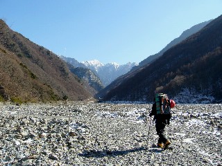 すこしだけ気合が入っていたからか、意外に早く赤河原に到着。丹渓山荘を覗くが、だれもおらず、結局、峪は貸しきりのよう。