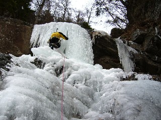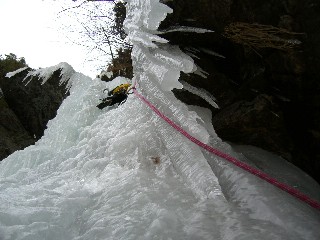 それは立っている長さというファクターより、気温の低さ、氷の硬さにという要因によるもので、だから、今日の舞姫の滝のように立っている部分が短く、また、気温も高めで氷もやわらかいこの滝は数段優しく感じられる。いずれにしても氷も水物。その時々のシチュエーションで大きく変わるんだろうけど。