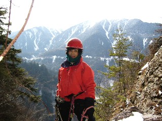 一方、右はまずまずで、意欲をそそられるものがある。右上に一段上がってオーバーハングの下で確保に入る。