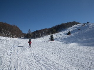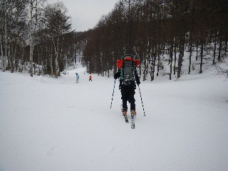 前回来た時に、山屋にはリフトを使わせないというありがたい言を頂戴した。だから、端からリフトを使う気はない。シールを着けてぺたぺた歩き始めたとき、駐車場に戻ってくる山屋発見。なんとYCCの小島さんと、時々PUM2でお会いした萩原さんだ。