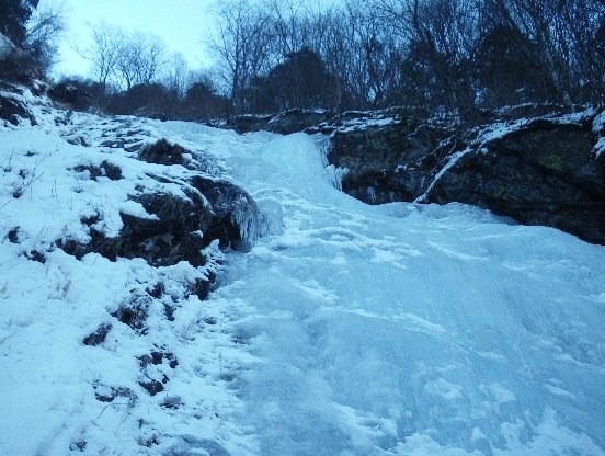 右のナメは名前の通りナメ氷で傾斜は平均的に緩いが、3ピッチ目にはピリリと立ったパートが出てきて、そこではふくらはぎが張った。