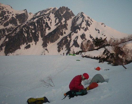 "大遠見と西遠見の間の台地は格好のテン場。明日登るG0稜も真正面に見え、最高のロケーションだ。"